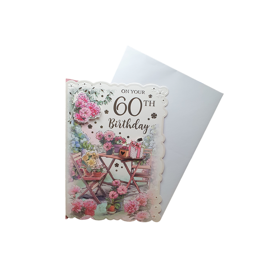 Celebrate your Special day 60th with Happy Birthday Wishes birthday card! Featuring a open back garden design with full of flowers and gift , this card is sure to bring a smile to your face. The card also comes with an envelope, making it the perfect all-in-one gift. Crafted from high-quality materials, this birthday card is built to last and is perfect for showing your love and appreciation for the Special day in your life.