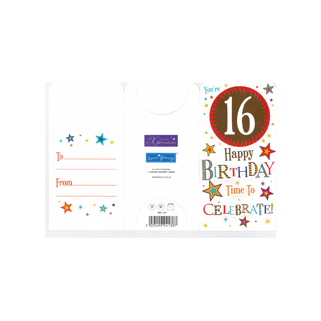 Celebrate your 16th birthday day in style with our Money Wallet Gift Card! This beautifully designed gift card is the perfect birthday present for your Loved one. Featuring a vibrant and colorful design, this gift card is sure to bring a smile to Loved one face. The card comes with a matching envelope, adding an extra touch of elegance to your gift.The inside of the card is left blank, allowing you to personalize it with your own heartfelt message. Simply fill in the 'from' and 'to' information, and your gift is ready to go!