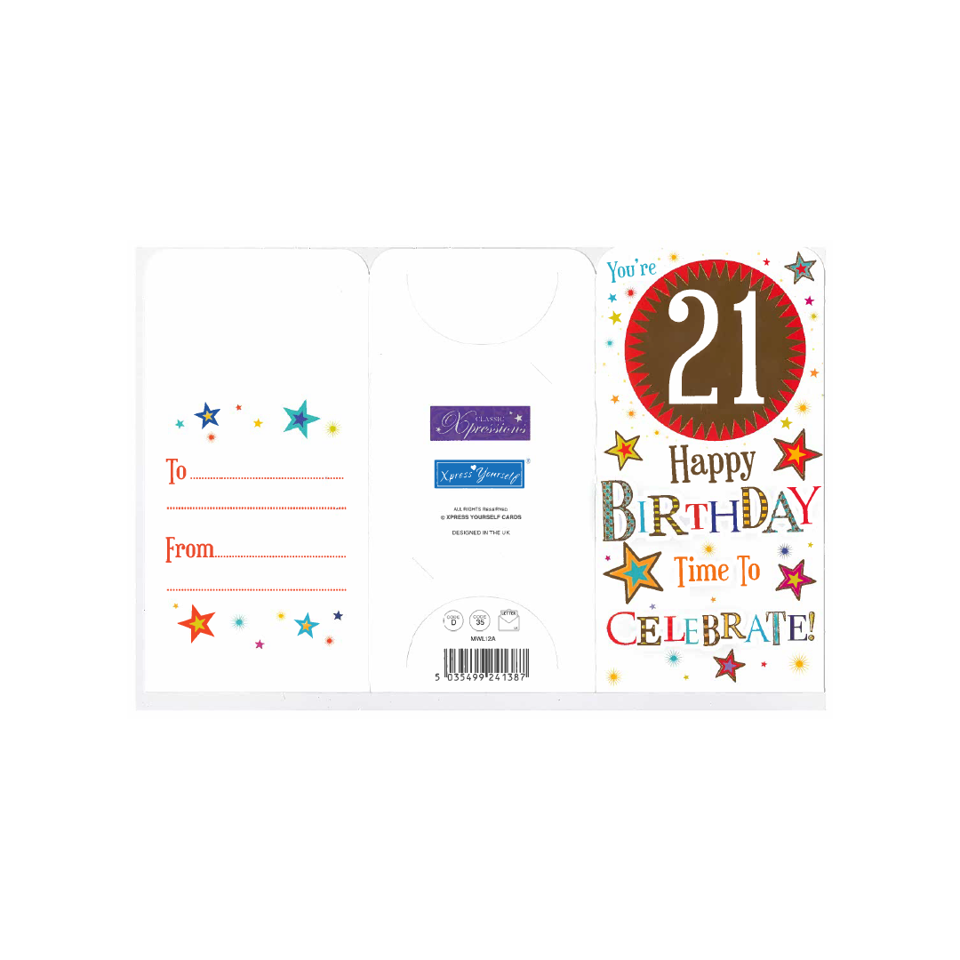 Celebrate your 21th birthday day in style with our Money Wallet Gift Card! This beautifully designed gift card is the perfect birthday present for your Loved one. Featuring a vibrant and colorful design, this gift card is sure to bring a smile to Loved one face. The card comes with a matching envelope, adding an extra touch of elegance to your gift.The inside of the card is left blank, allowing you to personalize it with your own heartfelt message. Simply fill in the 'from' and 'to' information, and your gift is ready to go!