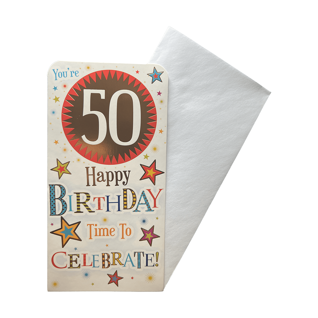 Celebrate your 50th birthday day in style with our Money Wallet Gift Card! This beautifully designed gift card is the perfect birthday present for your Loved one. Featuring a vibrant and colorful design, this gift card is sure to bring a smile to Loved one face. The card comes with a matching envelope, adding an extra touch of elegance to your gift.The inside of the card is left blank, allowing you to personalize it with your own heartfelt message. Simply fill in the 'from' and 'to' information, and your gift is ready to go!