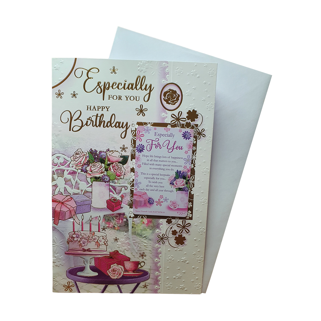 Celebrate your Happy Birthday with Birthday card Especially for you! Featuring Pink Colour and Beautiful Flower with Birthday cake and gift card design for you. this card is sure to bring a smile to your face. The card also comes with an envelope and Keepsake, making it the perfect all-in-one gift. Crafted from high-quality materials, this birthday card is built to last and is perfect for showing your love and appreciation to your life.