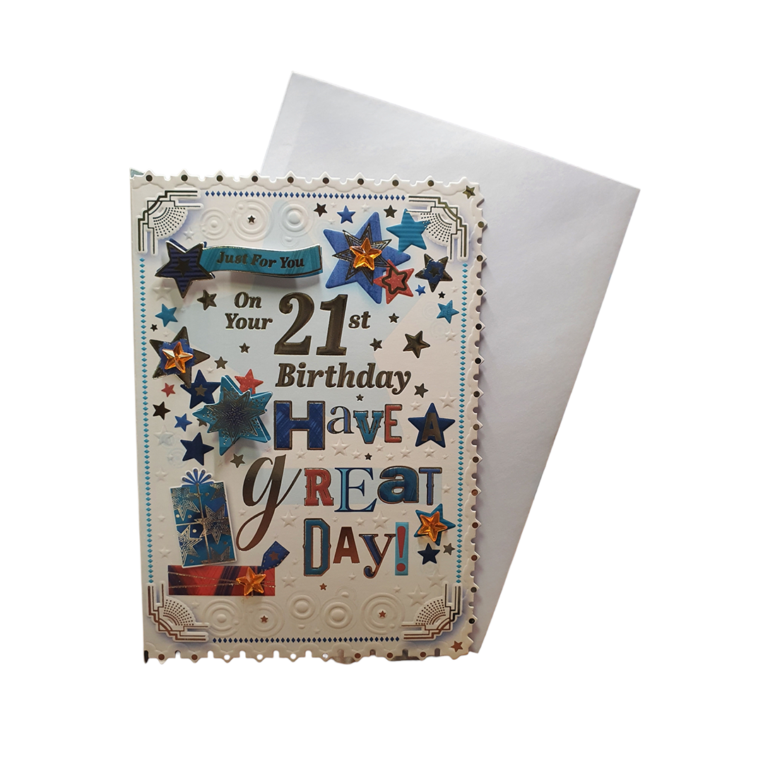 Celebrate your 21st birthday with Happy Birthday Wishes birthday card! Featuring a Characteristic 21st birthday have great day and multiple star sticker on card. The perfect way to wish someone a fantastic 21st birthday and mark this significant moment in their life. The card also comes with an envelope, making it the perfect all-in-one gift. Crafted from high-quality materials.