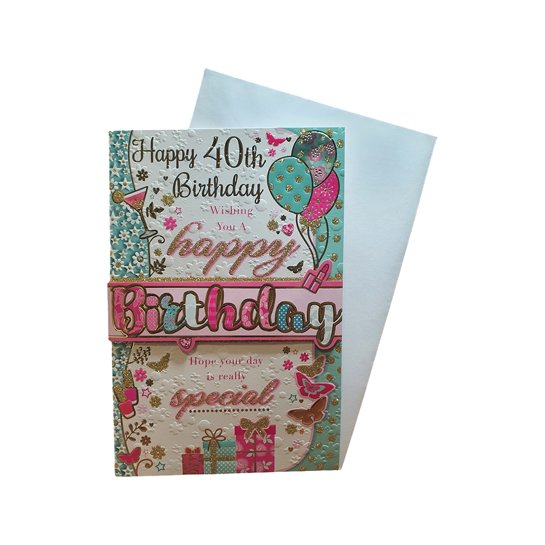 Celebrate special 40th Happy Birthday Greeting Card This delightful card is the perfect way to convey your heartfelt birthday wishes and make the recipient's day even more joyful. With its vibrant design and thoughtful message, this card adds an extra layer of happiness and thoughtfulness to your birthday greetings.