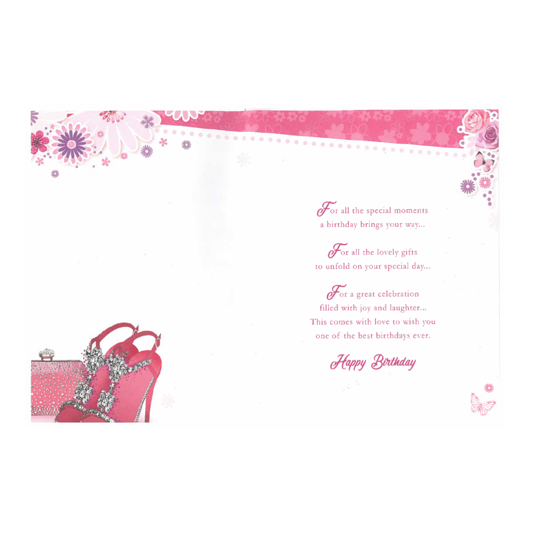Birthday Card for A Dear Granddaughter's 18th Happy Birthday – Pink sandals with designing purse and colourful flower design .