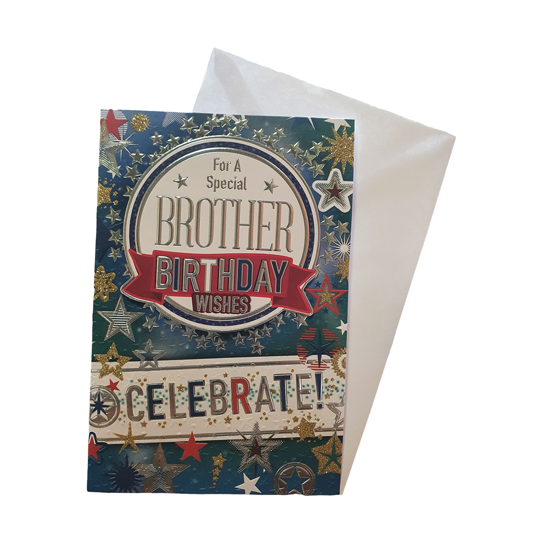 Celebrate birthdays for special brother birthday wishes in all Greeting Card This delightful card is the perfect way to convey your heartfelt birthday wishes and make the recipient's day even more joyful. With its vibrant design and thoughtful message, this card adds an extra layer of happiness and thoughtfulness to your birthday greetings.