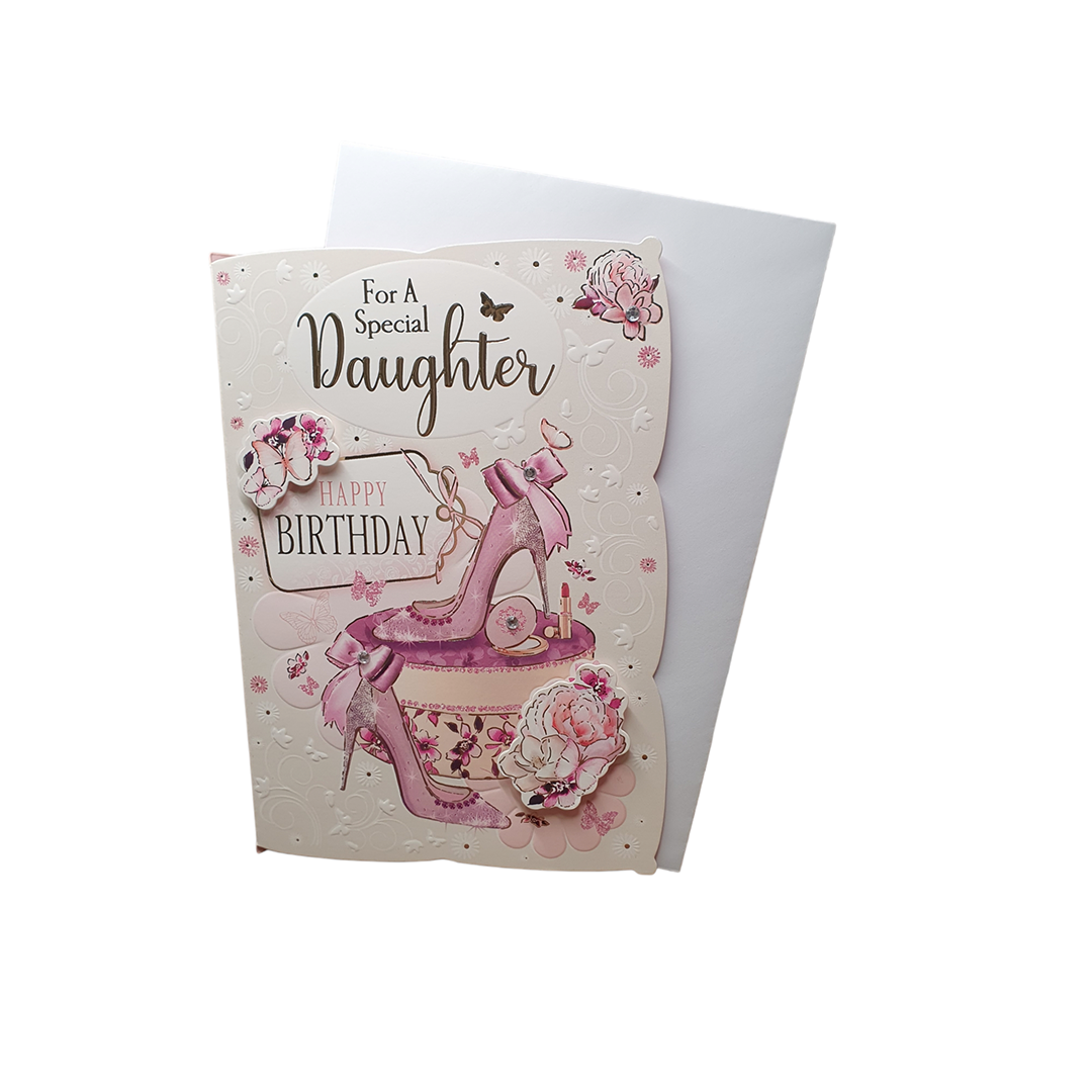 - Celebrate your Special Daughter with Happy Birthday Wishes "Express Yourself" birthday card! Featuring High hills and decorative design with butterflies and flowers , this card is sure to bring a smile to your Special Daughter's face.