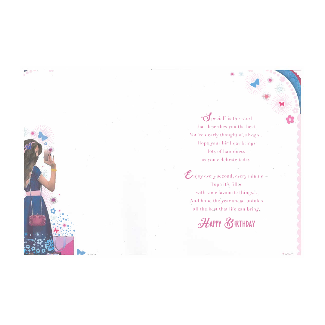 Birthday card For A Special Daughter - Beautiful girl wear blue western cloth and capture mirror selfie.