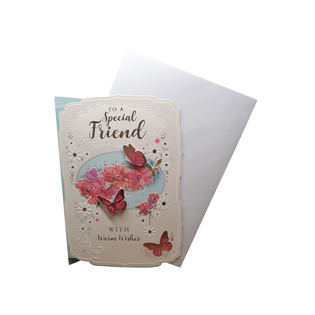 - Celebrate your Special Female Friend with warm Happy Birthday Wishes "Express Yourself" birthday card! Featuring a flower and butterflies design, this card is sure to bring a smile to your special friend face.
