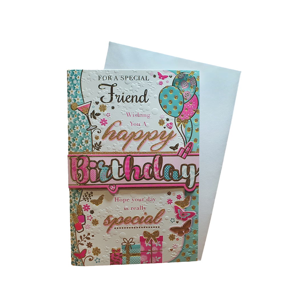 Celebrate special For A Friend Wishing Happy Birthday Greeting Card This delightful card is the perfect way to convey your heartfelt birthday wishes and make the recipient's day even more joyful. With its vibrant design and thoughtful message, this card adds an extra layer of happiness and thoughtfulness to your birthday greetings.