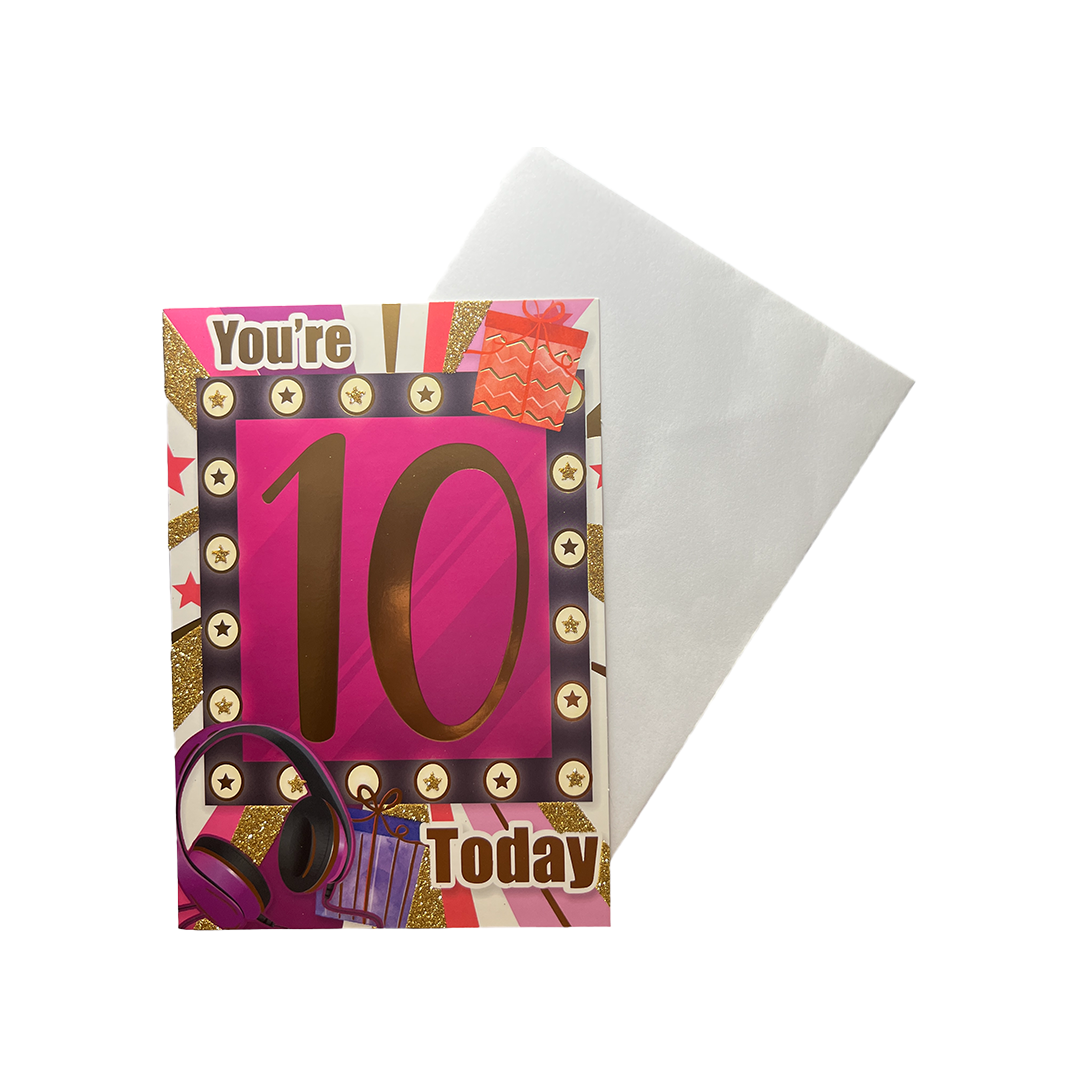 Celebrate the special 10-year-old girl in your life with this fun and colorful birthday card. Measuring 19 x 13.3 cm, this card features a vibrant and playful design that's sure to bring a smile to her face. The card comes with an envelope for easy mailing, so you can send your warm wishes even if you can't be there in person.