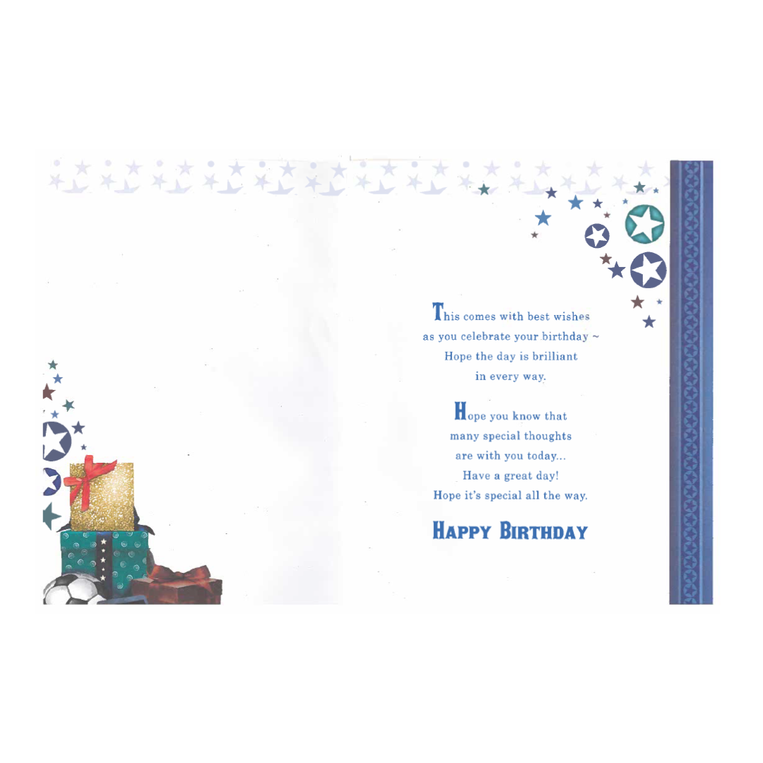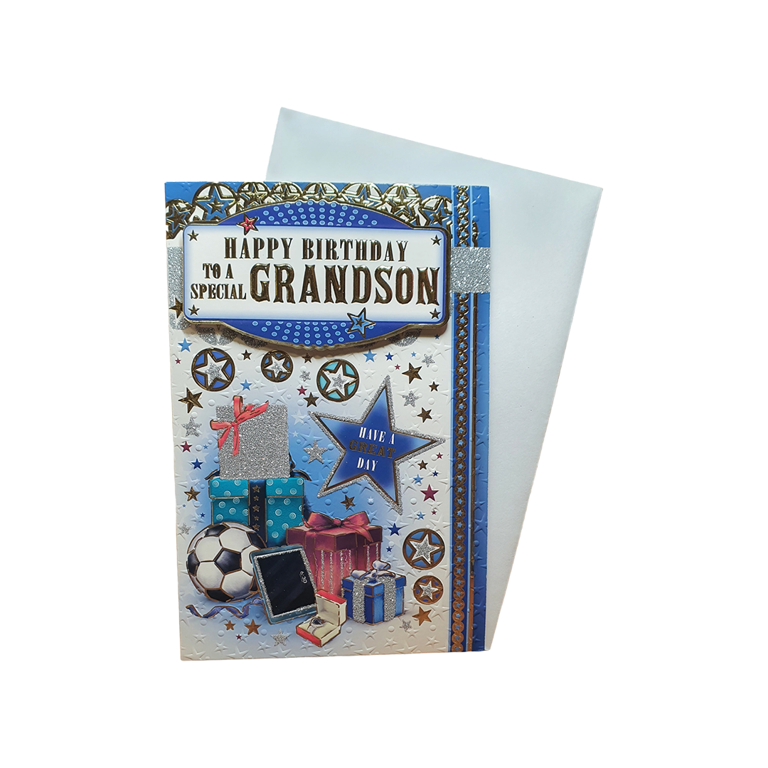 Celebrate special birthdays to a special GrandSon Greeting Card This delightful card is the perfect way to convey your heartfelt birthday wishes and make the recipient's day even more joyful. With its vibrant design and thoughtful message, this card adds an extra layer of happiness and thoughtfulness to your birthday greetings.
