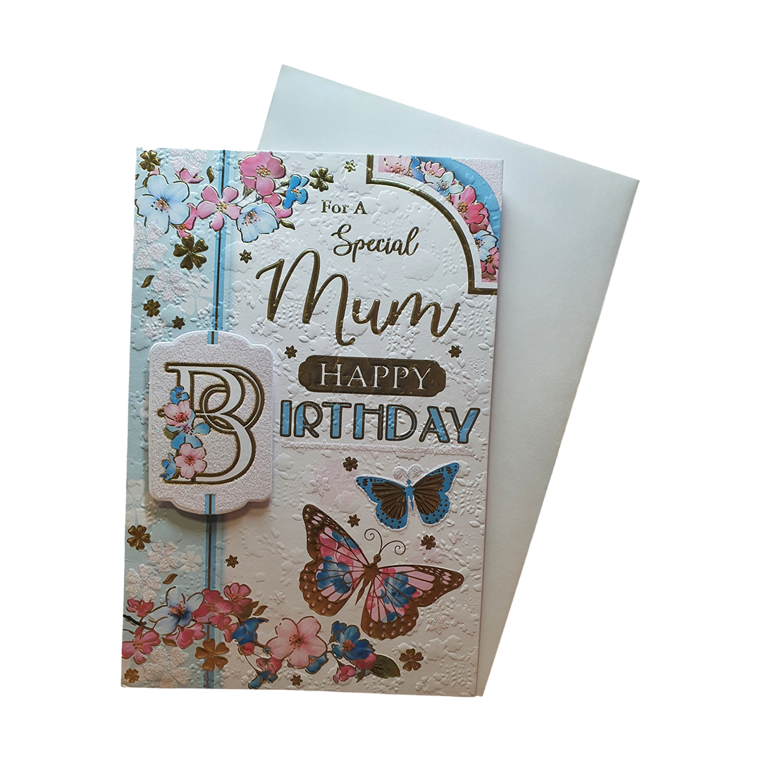 Birthday Card For A Special Mum – Sky theme with flying many butterfly and flowers decoration.
