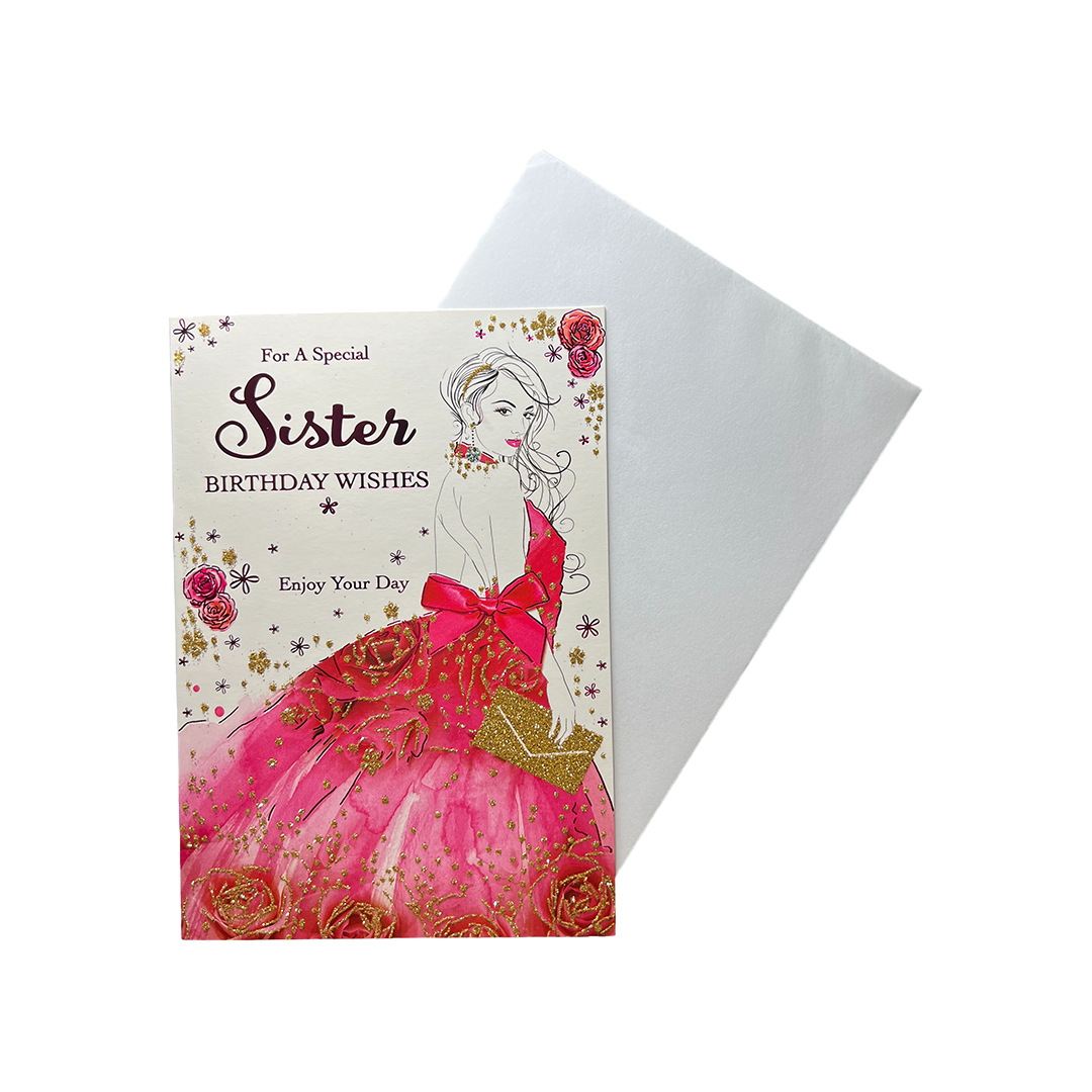 Celebrate a special sister's birthday with this beautifully designed birthday card. Measuring 19 x 13.3 cm, it comes complete with an envelope for easy posting and features a stunning, eye-catching design that's sure to stand out. With a heartfelt message inside, this card is the perfect way to show your love and appreciation for your amazing sister.