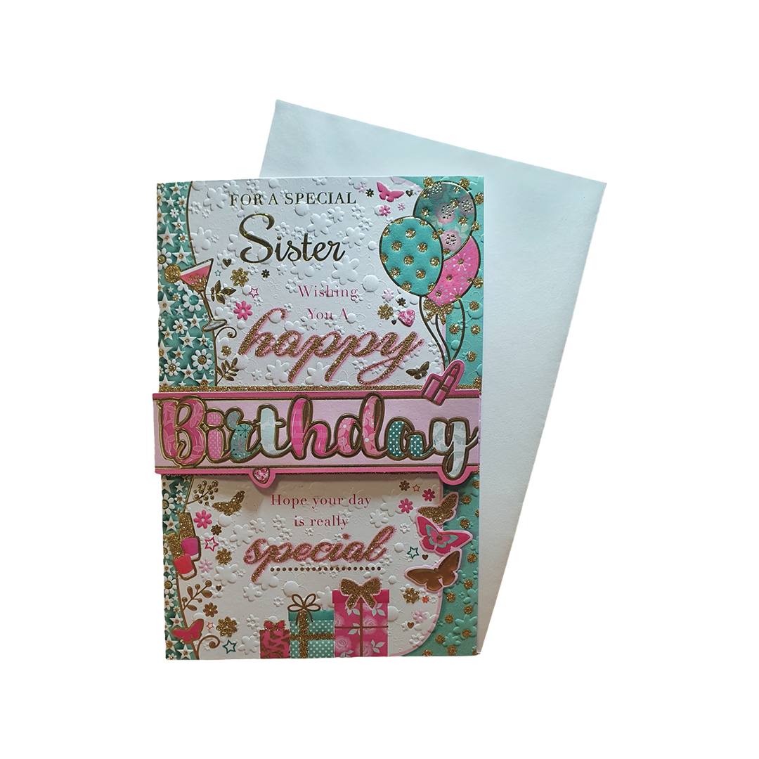 Celebrate Special Sister Wishing Happy Birthday Greeting Card This delightful card is the perfect way to convey your heartfelt birthday wishes and make the recipient's day even more joyful. With its vibrant design and thoughtful message, this card adds an extra layer of happiness and thoughtfulness to your birthday greetings.