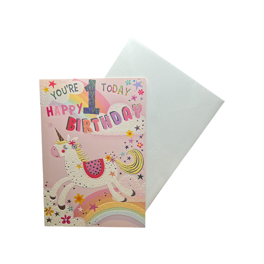 Celebrate your little one's first birthday with the Birthday Card for Age 1 Female. This adorable card features bright colors and cute graphics that are perfect for your little princess. The card measures 19x13.3 centimetres and includes an envelope for easy posting.
