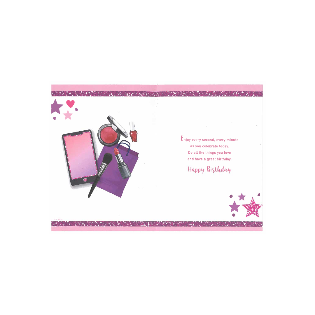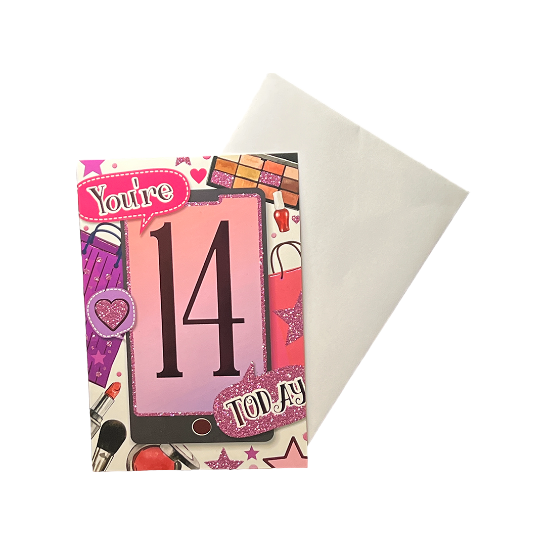 Make her birthday even more special with this brand birthday card, featuring a stylish makeup accessories design. Measuring 19x13.3 centimetres, this card comes with an envelope for easy gifting. The perfect choice for any teenage girl celebrating her 14th birthday, this card is sure to bring a smile to her face. With its high-quality design and attention to detail, this card is the perfect way to express your love and appreciation for the special young lady in your life.