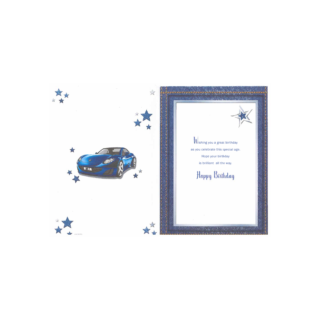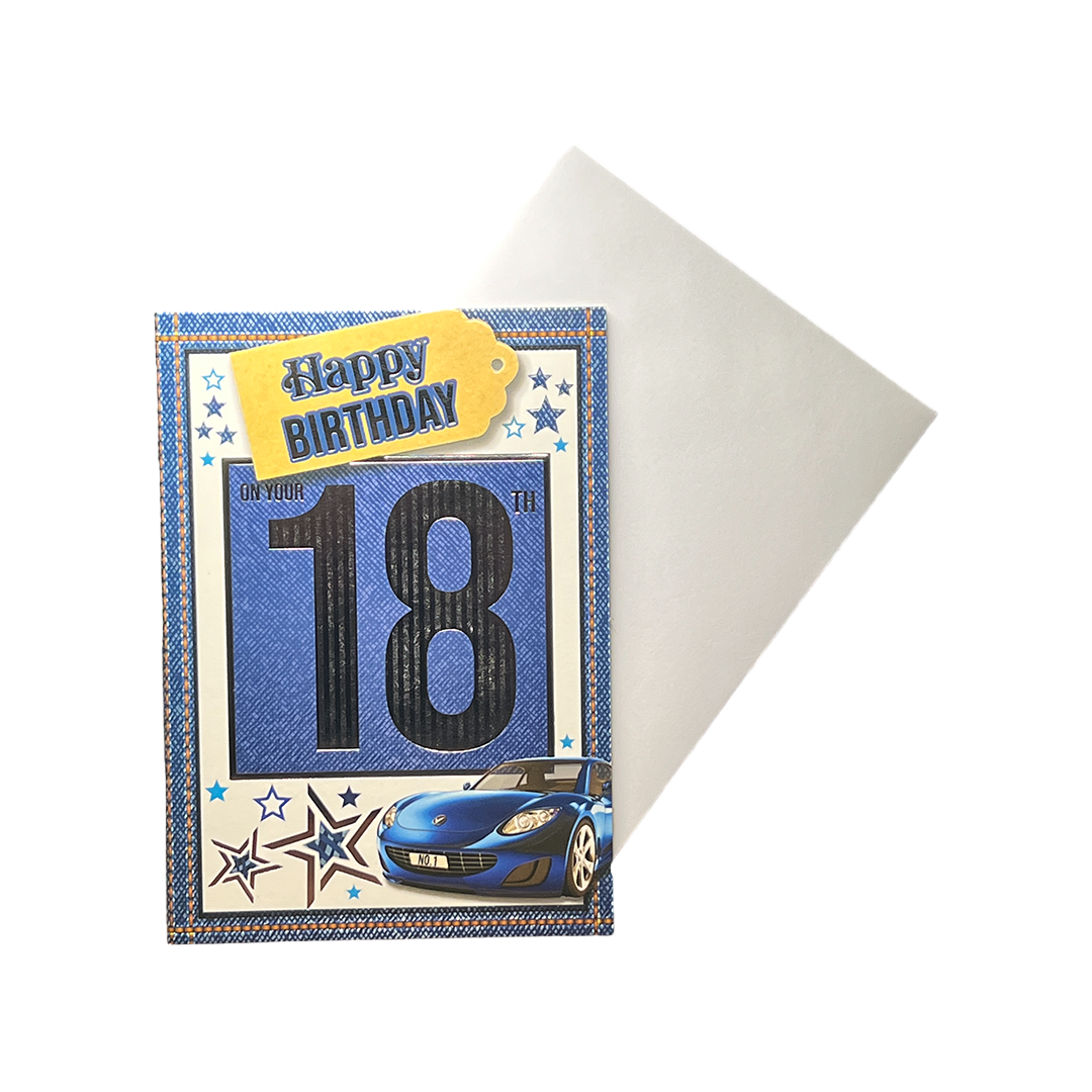 Celebrate the milestone of turning 18 with this stylish and sleek birthday card from brand. The card features a blue font with a stunning fancy car design, perfect for any car enthusiast or young man with a passion for speed. The card measures 19x13.3 centimetres, and includes an envelope for easy gifting or mailing. Made with high-quality materials, this card is sure to impress and make the recipient's 18th birthday even more special. Order now and surprise your loved one with this amazing birthday card from brand.