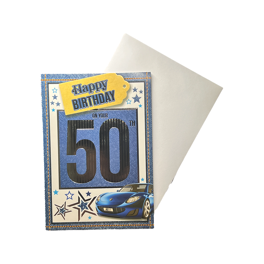 Celebrate the milestone of turning 50 with this stylish and sleek birthday card from brand. The card features a blue font with a stunning fancy car design, perfect for any car enthusiast or young man with a passion for speed. The card measures 19x13.3 centimetres, and includes an envelope for easy gifting or mailing. Made with high-quality materials, this card is sure to impress and make the recipient's 50th birthday even more special. Order now and surprise your loved one with this amazing birthday card from brand.