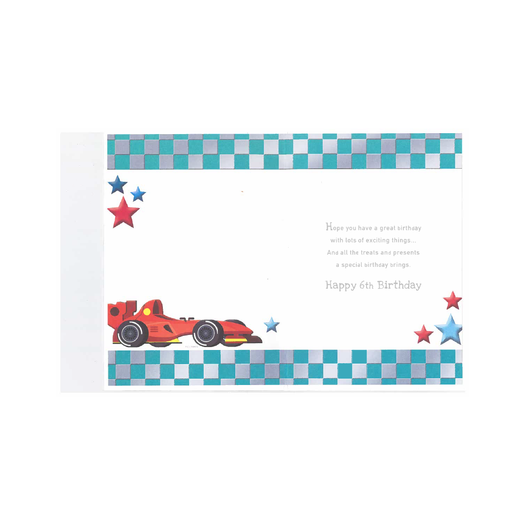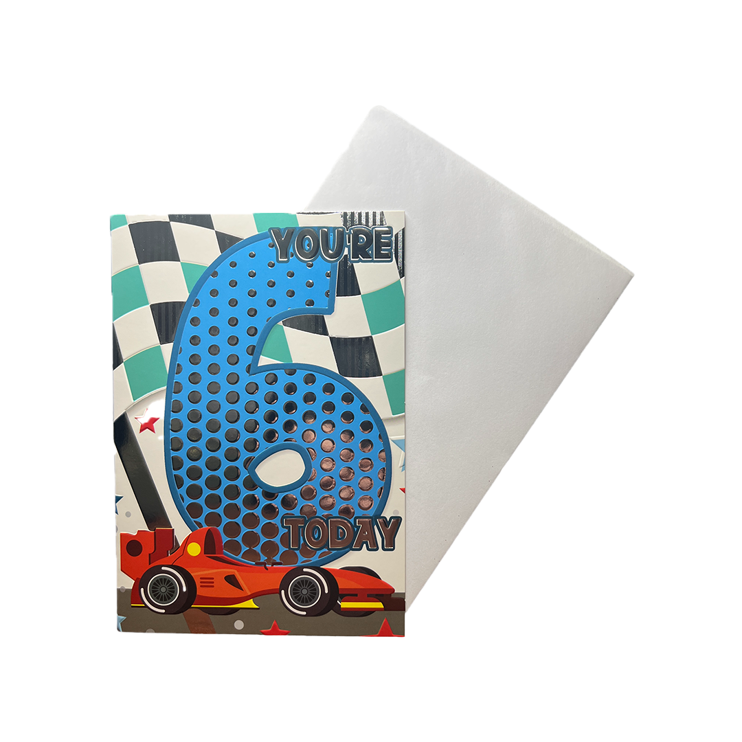 This birthday card is perfect for a little boy who loves cars and racing! It features a colorful and vibrant design of a race car and driver. Measuring 19 x 13.3 cm, the card comes with an envelope for easy sending.