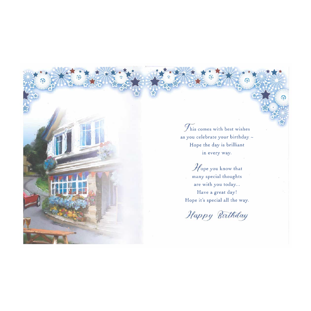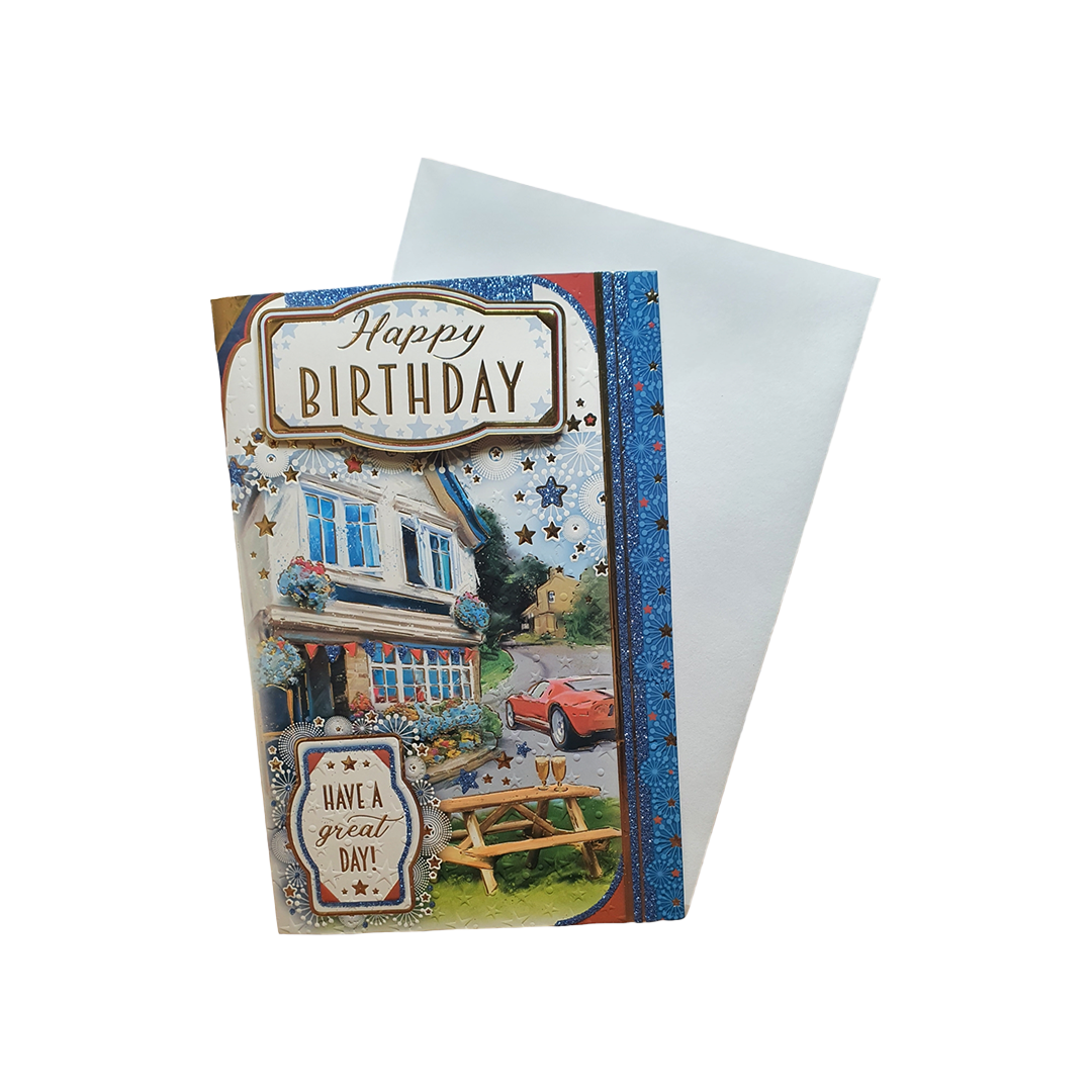 Birthday Card For Happy Birthday – Beautiful house near read sport car and clean garden.