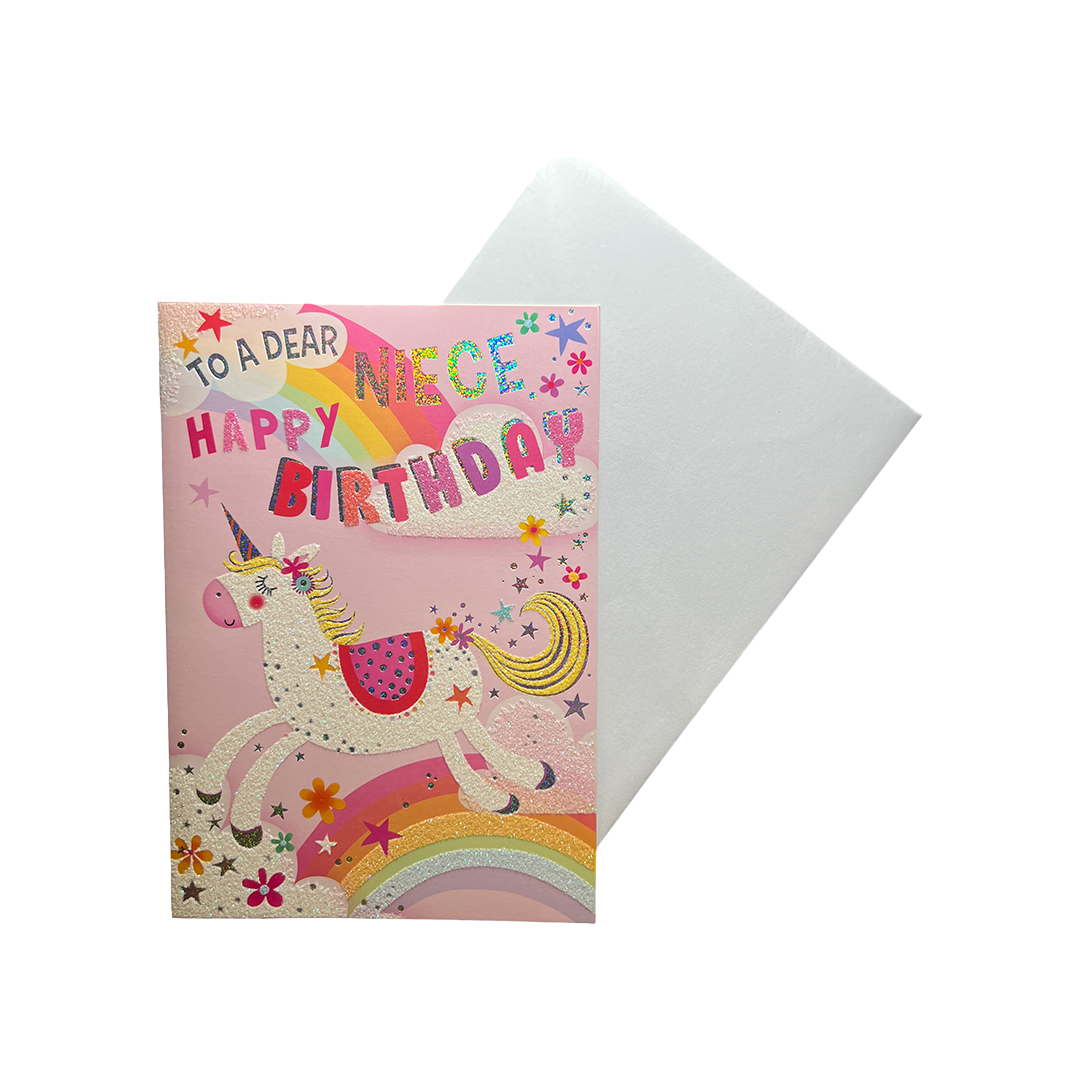 Celebrate your niece's birthday with the Birthday Card. This adorable card features bright colors and cute graphics that are perfect for your niece. The card measures 19x13.3 centimetres and includes an envelope for easy posting.