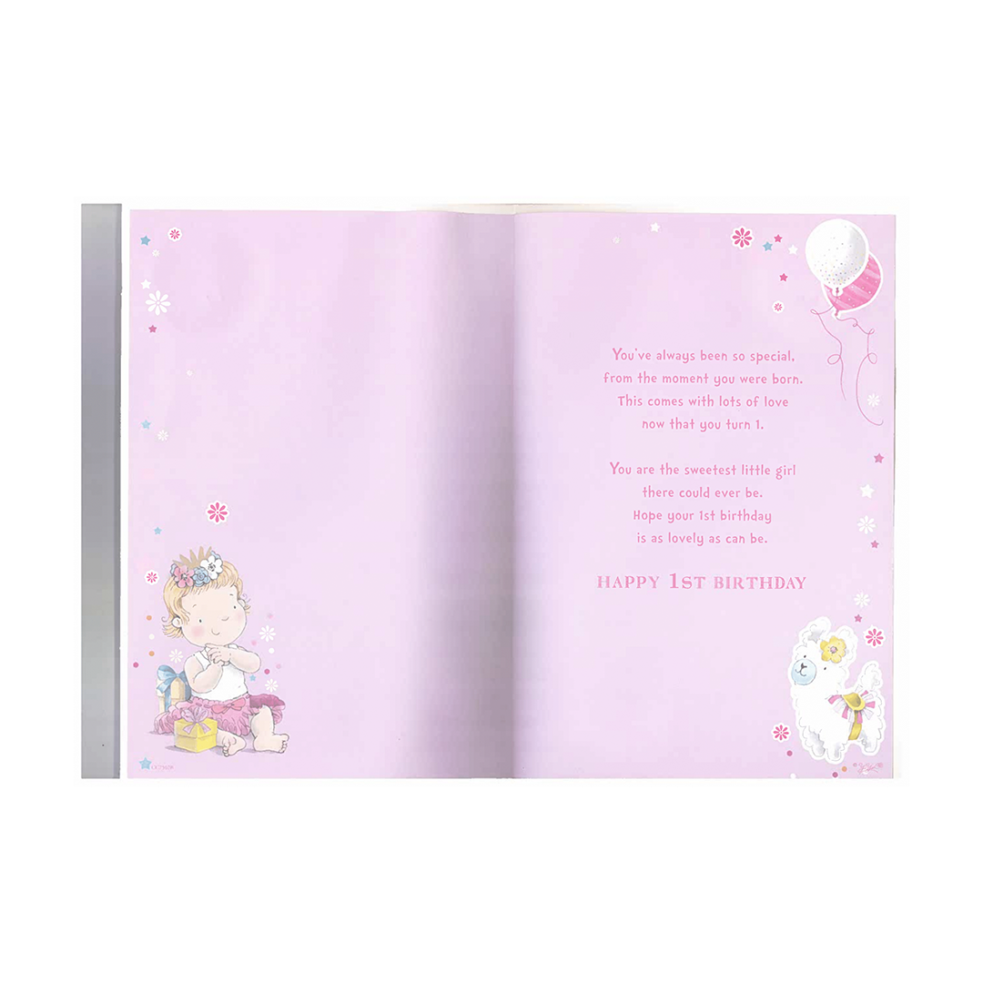 The "Express Yourself" Birthday Card for Niece Age 1 is the perfect way to celebrate your niece's first birthday. The card features an animated little one-year-old girl and her cute pet sheep design dressed as a princess on a pink font. The card comes with a badge and envelope, making it a complete gift package that is perfect for a first birthday celebration.