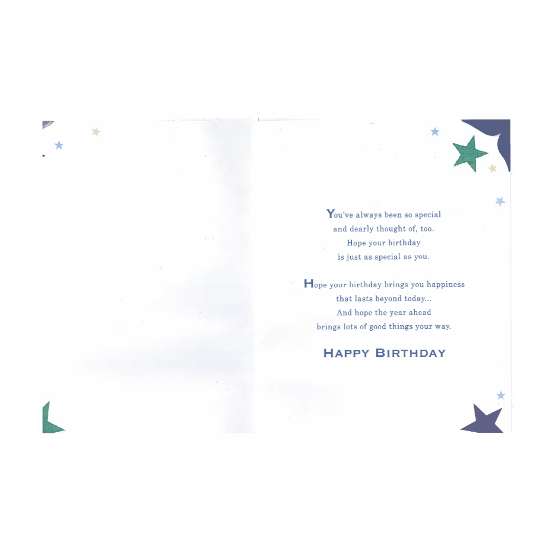 Celebrate special birthdays To Someone Special happy birthday Greeting Card This delightful card is the perfect way to convey your heartfelt birthday wishes and make the recipient's day even more joyful. With its vibrant design and thoughtful message, this card adds an extra layer of happiness and thoughtfulness to your birthday greetings. Blue car theme with star decoration and special thoughts have a great day.