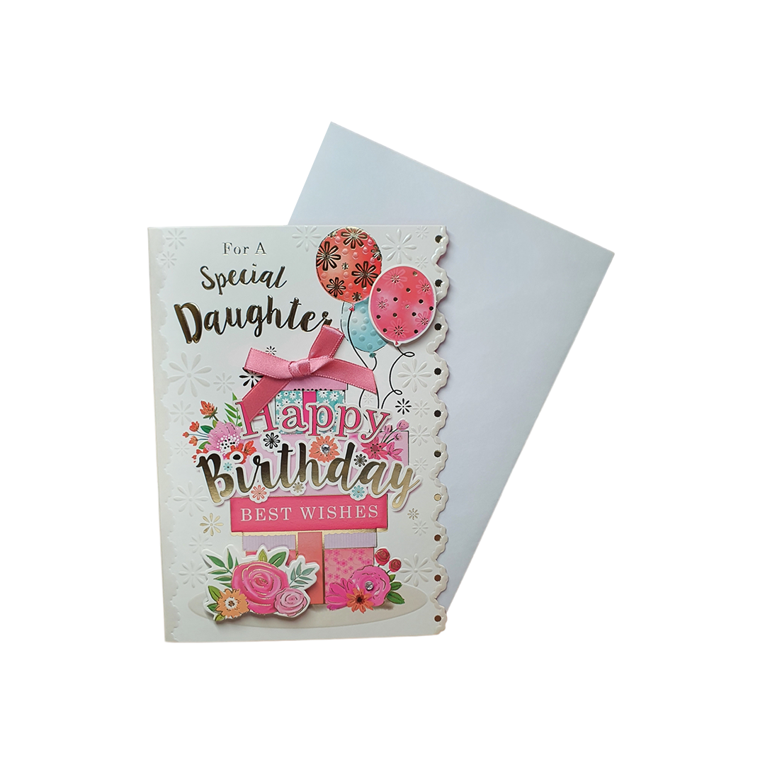 - Celebrate your Special Daughter with Happy Birthday Wishes "Express Yourself" birthday card! Featuring a pink satin ribbon, this card is sure to bring a smile to your daughter’s face.