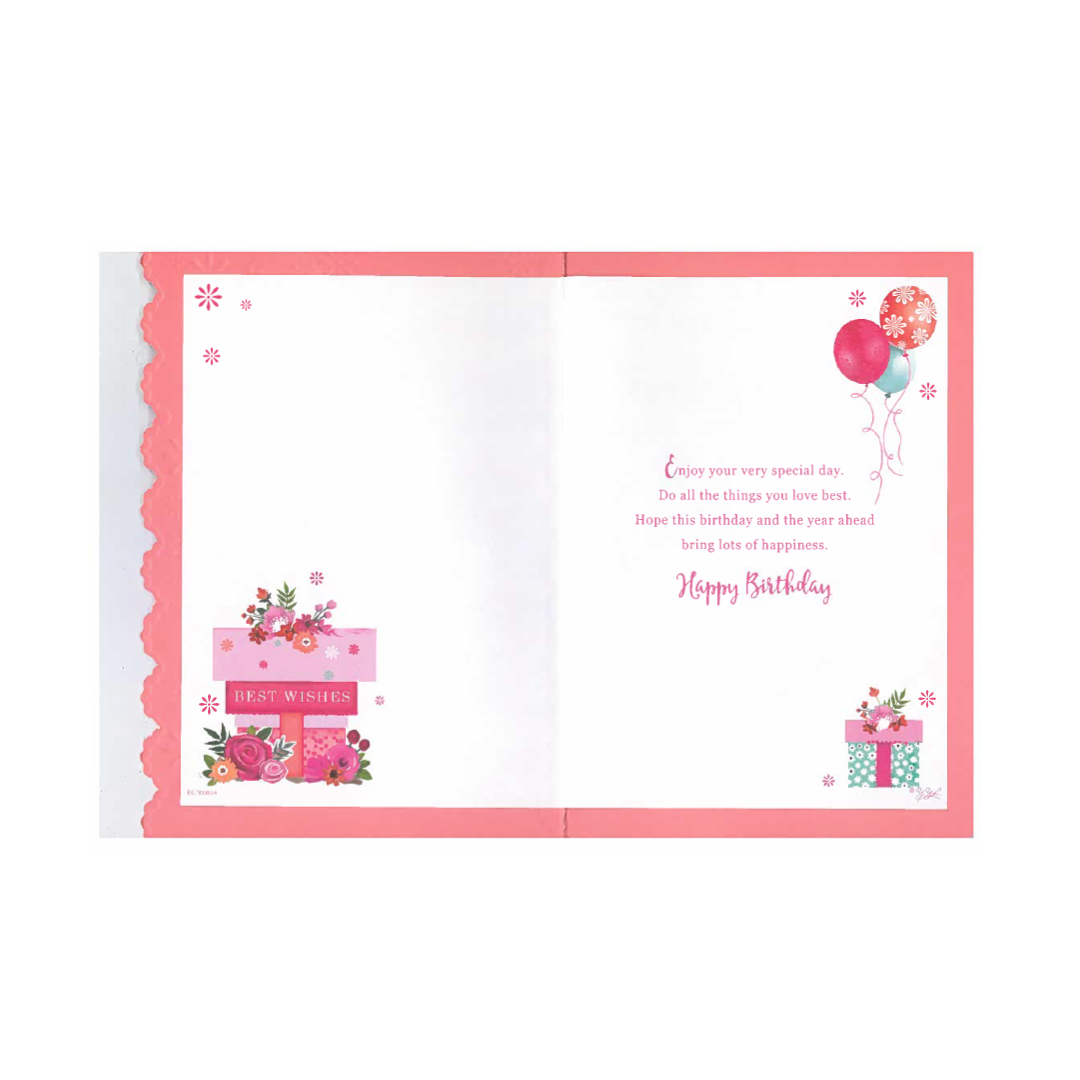 - Vibrant colors and pink design birthday card to delight your special daughter.