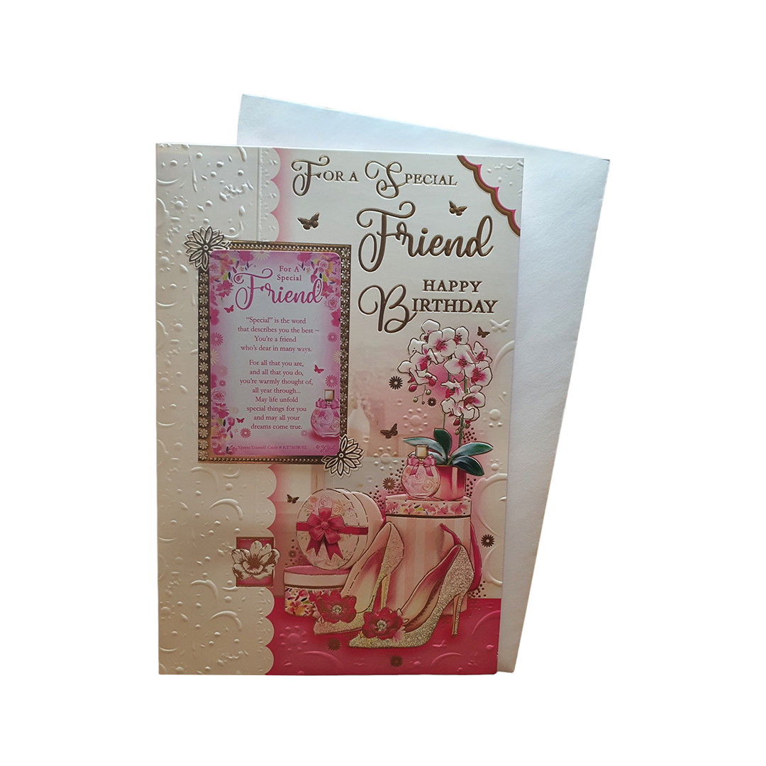 Celebrate your Special Friend with Happy Birthday with Birthday card for your Special Daughter! Featuring Beautiful Pink Flower and high hill design for Her. this card is sure to bring a smile to your Special Friend's face. The card also comes with an envelope and Keepsake, making it the perfect all-in-one gift. Crafted from high-quality materials, this birthday card is built to last and is perfect for showing your love and appreciation for the special Friend in your life.