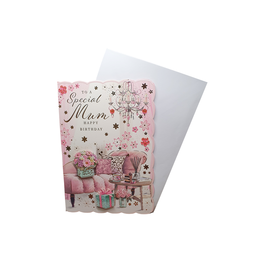 Celebrate your Special Mum with Happy Birthday Wishes "Express Yourself" birthday card! Featuring a Pink design of old house sofa and gift with best birthday wishes. The card also comes with an envelope, making it the perfect all-in-one gift.this birthday card is built to last and is perfect for showing your love and appreciation for the special Mum in your life.