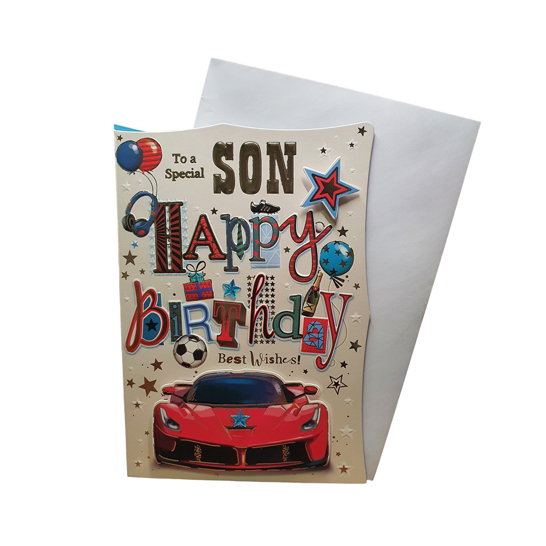 - Celebrate your Special son with Happy Birthday Wishes birthday card! Featuring a Characteristic happy birthday, this card is sure to bring a smile to your son face.