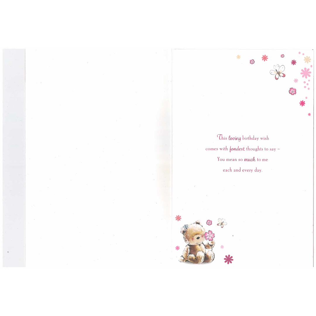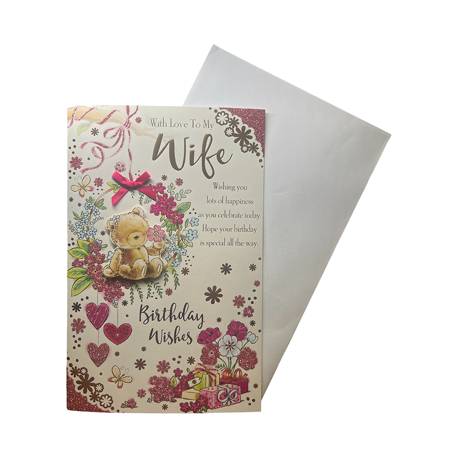 Birthday Card for Wife - 3D Effect on Cover Teddy Bear and Flowers Design