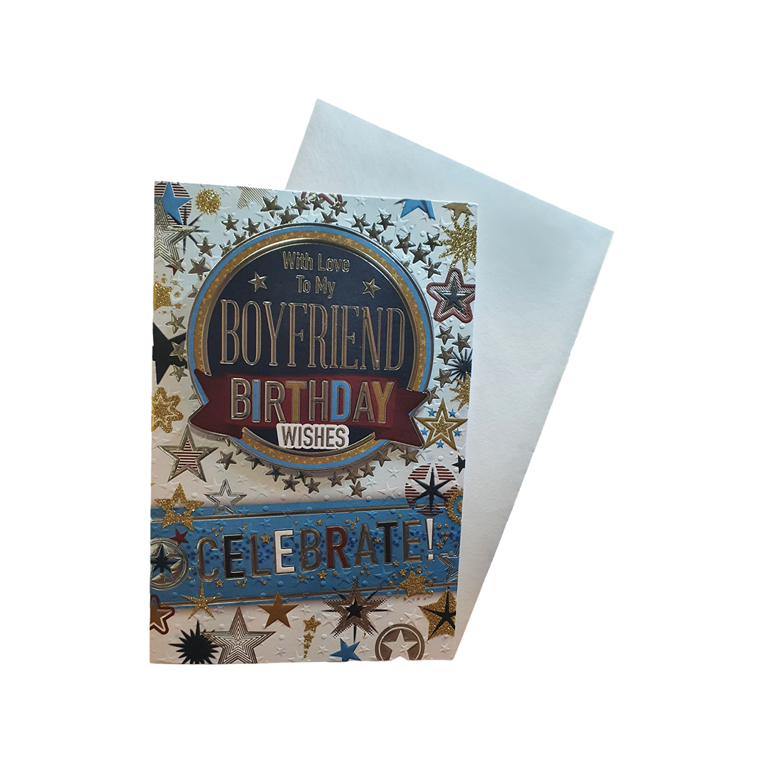 Celebrate birthday for a with love to my boyfriend Greeting Card. This delightful card is the perfect way to convey your heartfelt birthday wishes and make the recipient's day even more joyful. With its vibrant design and thoughtful message, this card adds an extra layer of happiness and thoughtfulness to your birthday greeting