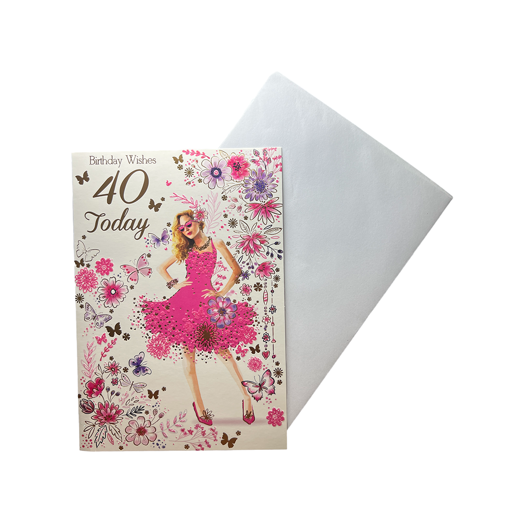 Celebrate a special lady's 40th birthday with this beautifully designed birthday card. Measuring 19 x 13.3 cm, it comes complete with an envelope for easy posting and features a stunning, eye-catching design that's sure to stand out. With a heartfelt message inside, this card is the perfect way to show your love and appreciation for the amazing woman in your life.