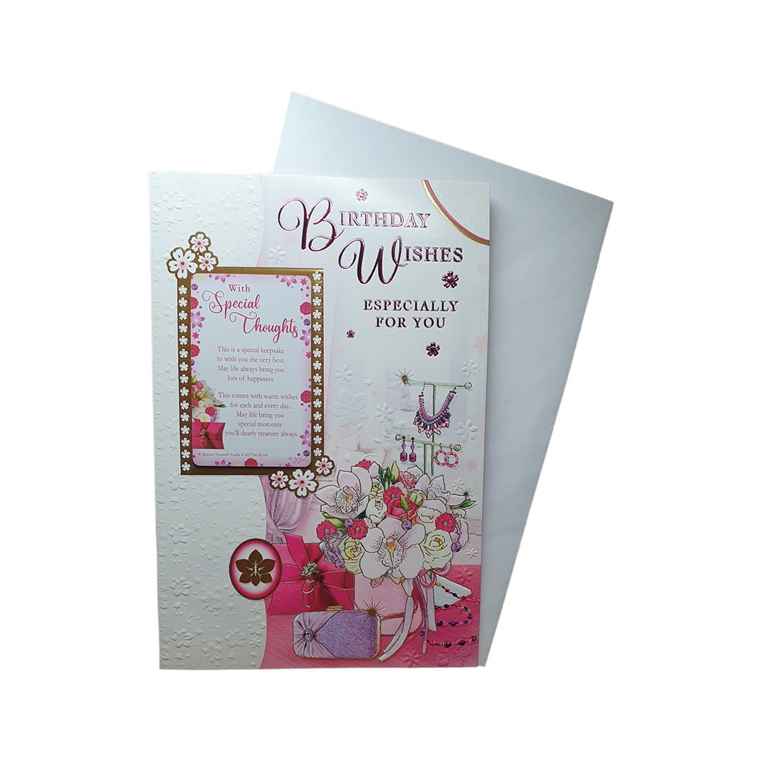 Celebrate your 21st Happy Birthday "Express Yourself" Birthday card for you! Featuring Flower, Earrings and Necklace Design for you, this card is sure to bring a smile to your face. The card also comes with an envelope and Keepsake, making it the perfect all-in-one gift. Crafted from high-quality materials, this birthday card is built to last and is perfect for showing your love and appreciation to your life.