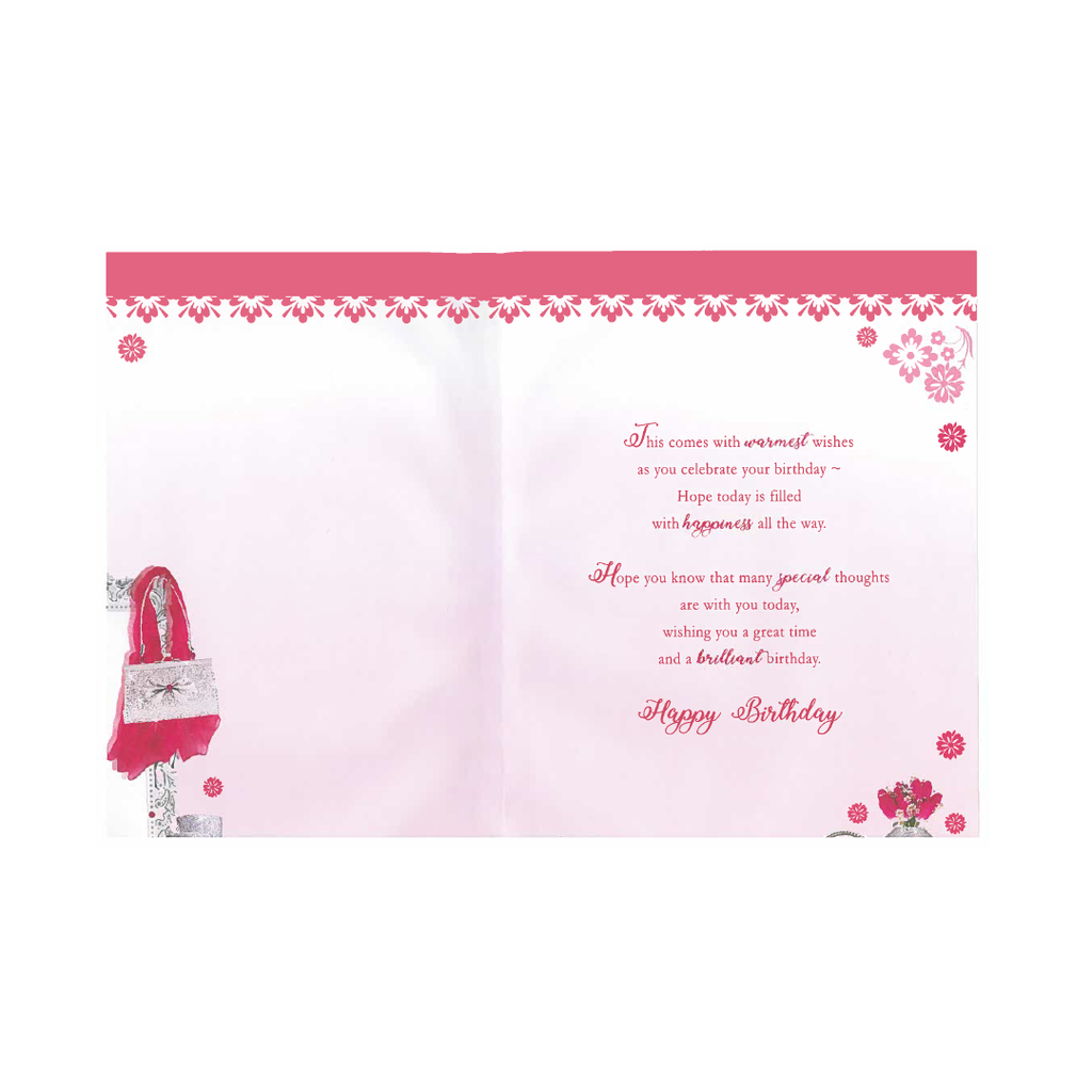 Make birthdays extra special with our "Celebrate in Style" birthday wishes cards. Birthday card for your birthday wishes. featuring Red and silver theme design for her. this card is sure to bring a smile to your face. The card also comes with an envelope and keepsake, making it the perfect all-in-one gift. Crafted from high-quality materials, this birthday card is built to last and is perfect for showing your love and appreciation for the special in your life.