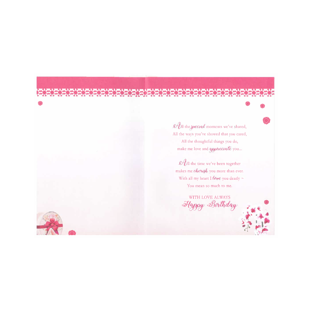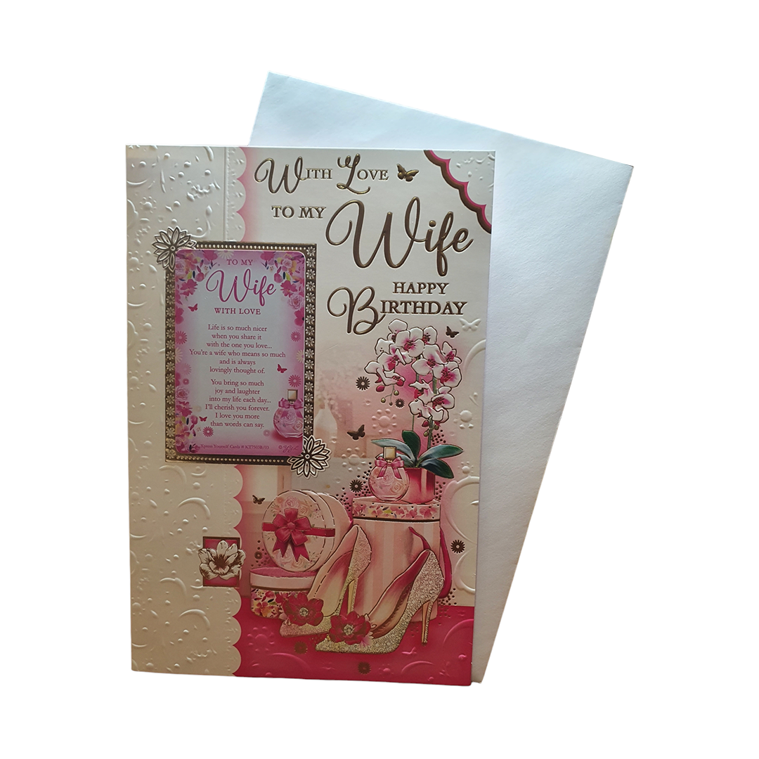 Celebrate your Lovely Wife with Happy Birthday with Birthday card for your Special Daughter! Featuring Beautiful Pink Flower and high hill design for Her. this card is sure to bring a smile to Lovely Wife's face. The card also comes with an envelope and Keepsake, making it the perfect all-in-one gift. Crafted from high-quality materials, this birthday card is built to last and is perfect for showing your love and appreciation for the Lovely Wife in your life.