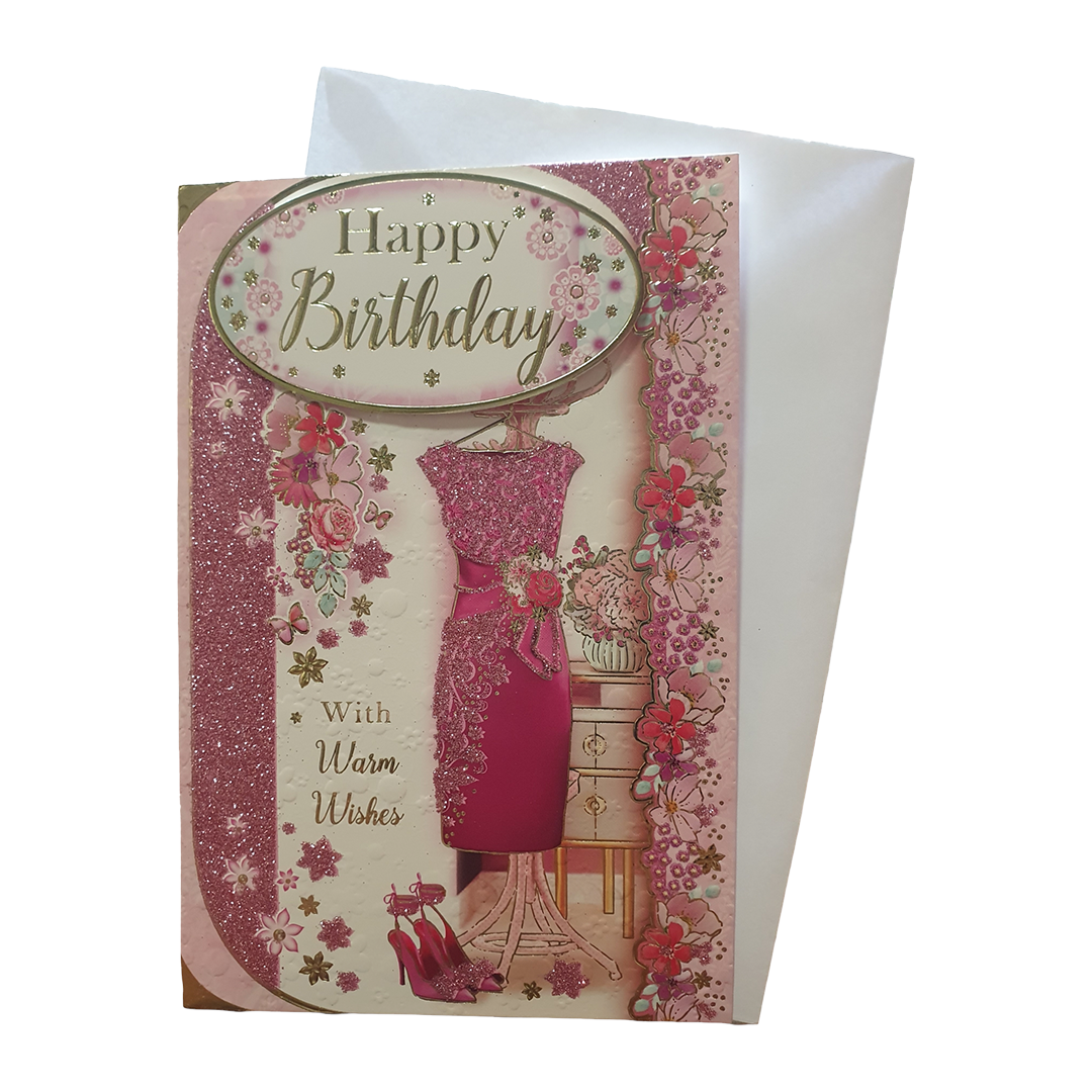 Birthday Card For Your Special One – Golden theme with red western dress and western shoes with flowers design.