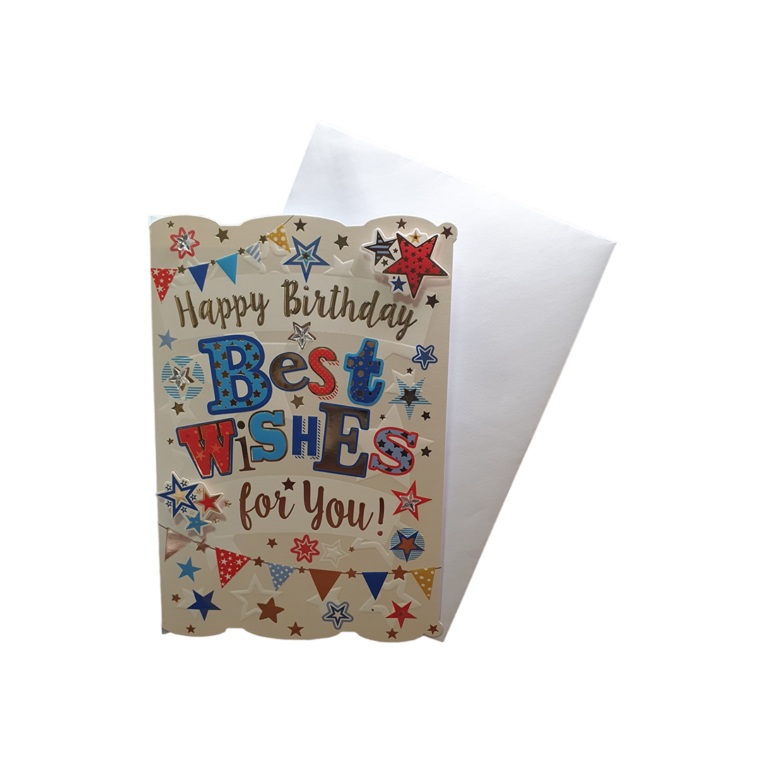 Celebrate your 70th birthday with Happy Birthday Wishes birthday card! Featuring a blue satin ribbon. The perfect way to wish someone a fantastic 70th birthday and mark this significant moment in their life. The card also comes with an envelope, making it the perfect all-in-one gift. Crafted from high-quality materials.