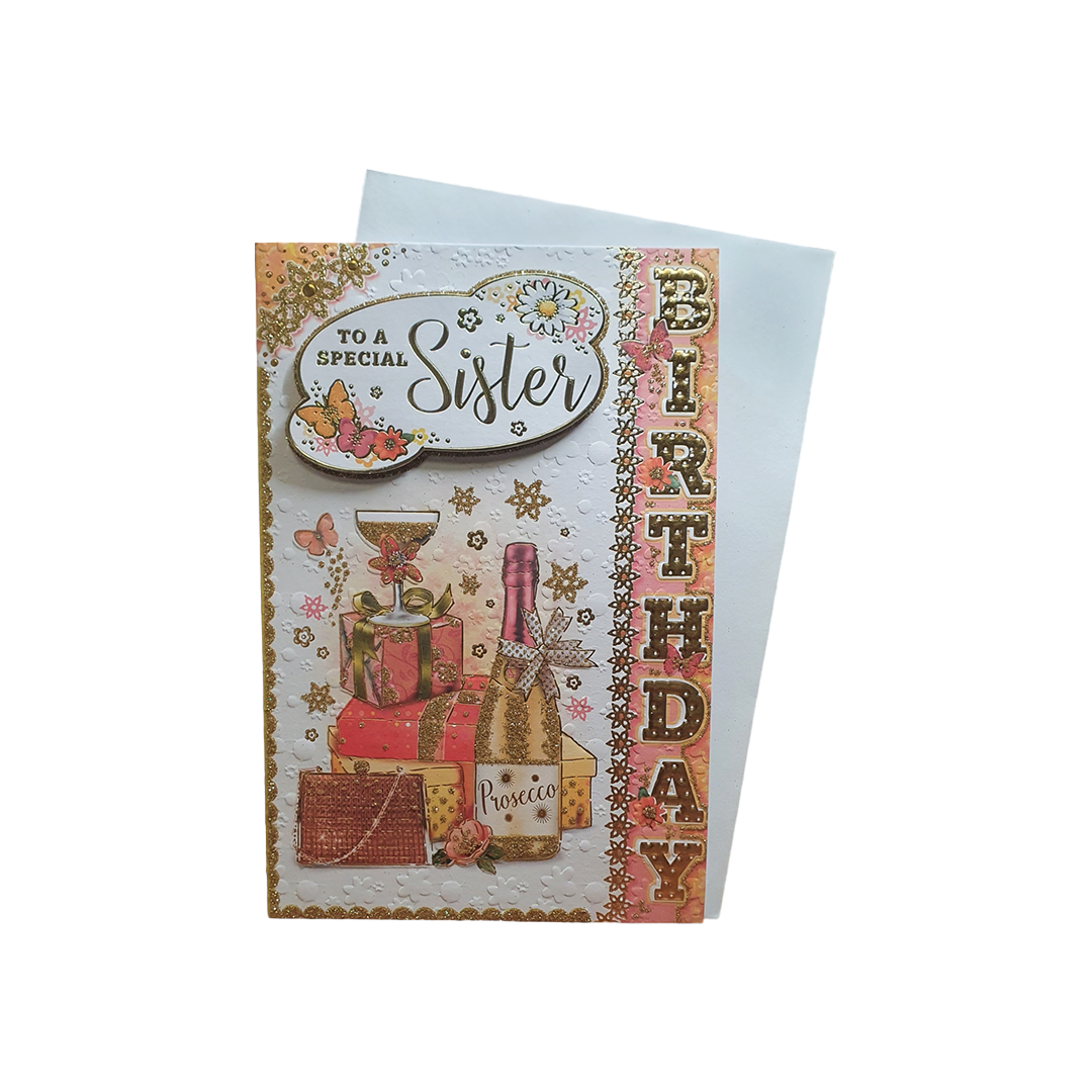 Celebrate special birthdays To A Special Sister Greeting Card This delightful card is the perfect way to convey your heartfelt birthday wishes and make the recipient's day even more joyful. With its vibrant design and thoughtful message, this card adds an extra layer of happiness and thoughtfulness to your birthday greetings.