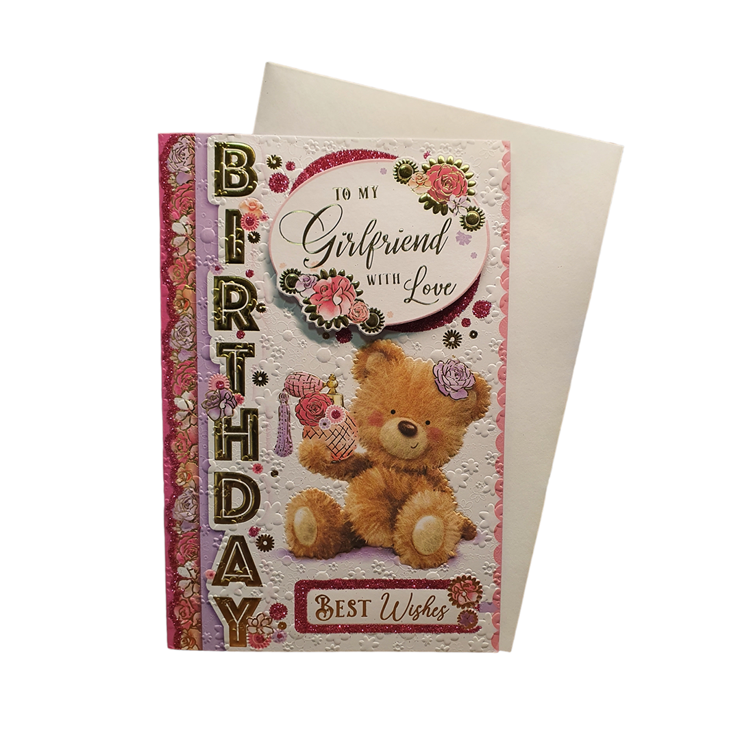 Celebrate birthdays to my girlfriend with love blessings celebrate greeting card. This delightful card is the perfect way to convey your heartfelt birthday wishes and make the recipient's day even more joyful. With its vibrant design and thoughtful message, this card adds an extra layer of happiness and thoughtfulness to your birthday greetings.