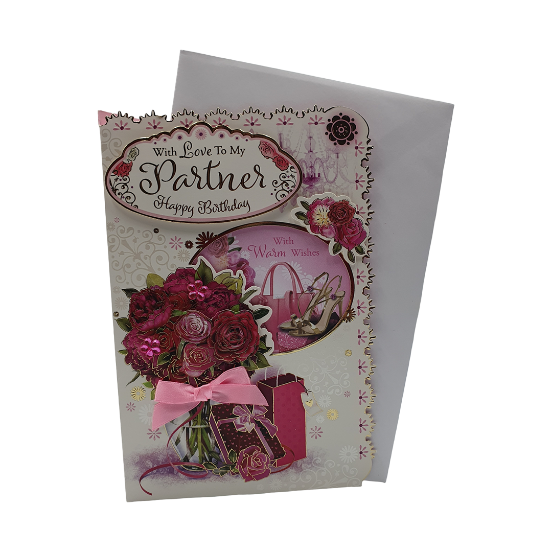 Celebrate special birthdays With Love To My Partner Greeting Card This delightful card is the perfect way to convey your heartfelt birthday wishes and make the recipient's day even more joyful. With its vibrant design and thoughtful message, this card adds an extra layer of happiness and thoughtfulness to your birthday greetings.