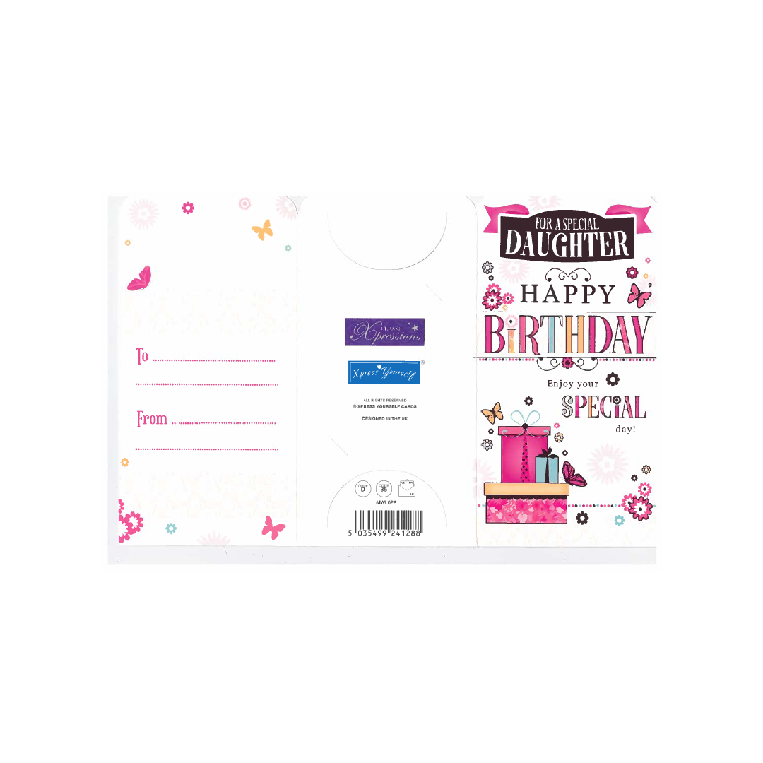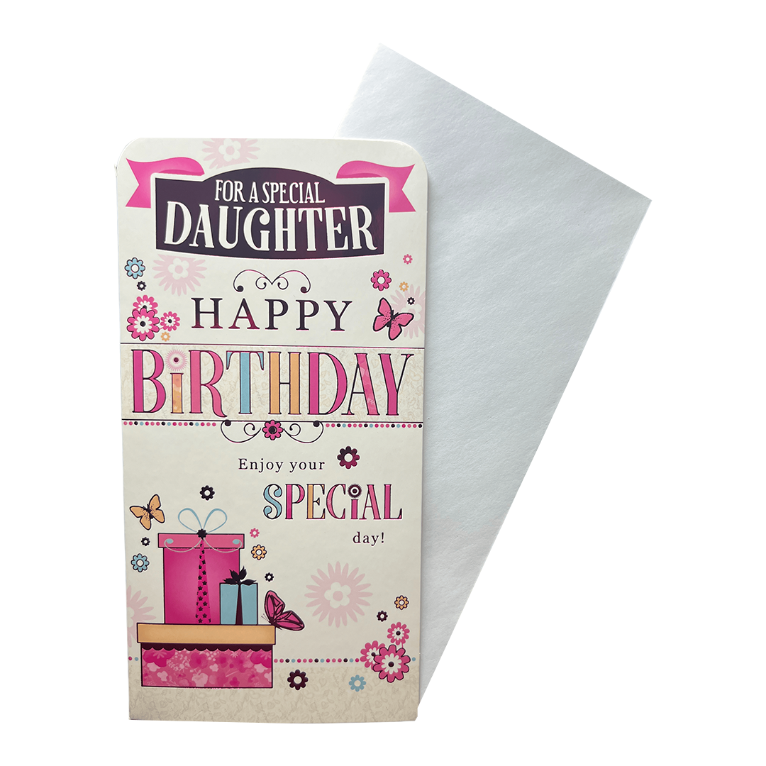 Celebrate your Daughter special day in style with our Money Wallet Gift Card! This beautifully designed gift card is the perfect birthday present for your beloved Daughter. Featuring a vibrant and colorful design, this gift card is sure to bring a smile to her face. The card comes with a matching envelope, adding an extra touch of elegance to your gift.The inside of the card is left blank, allowing you to personalize it with your own heartfelt message. Simply fill in the 'from' and 'to' information, and your gift is ready to go!