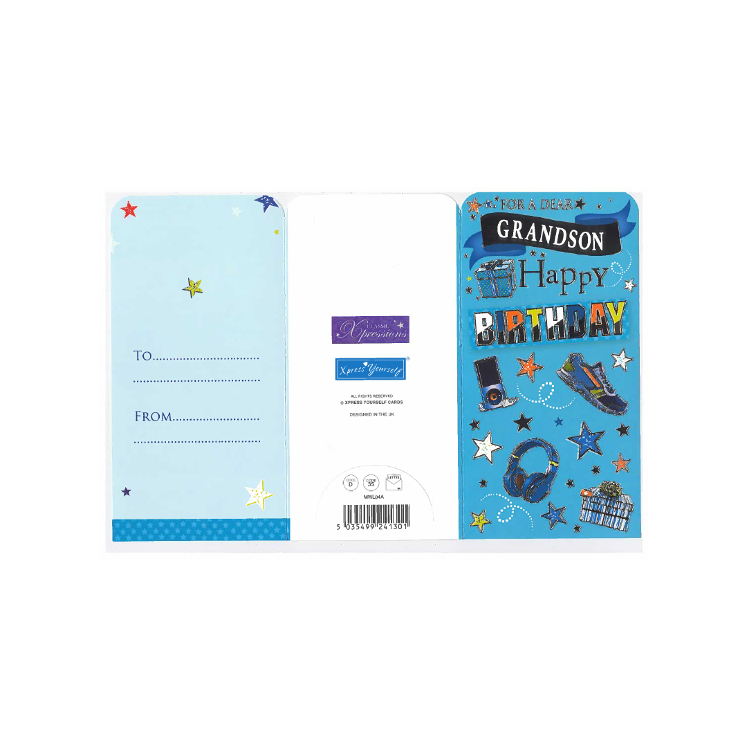 Celebrate your Grandson special day in style with our Money Wallet Gift Card! This beautifully designed gift card is the perfect birthday present for your beloved Grandson . Featuring a vibrant and colorful design, this gift card is sure to bring a smile to him face. The card comes with a matching envelope, adding an extra touch of elegance to your gift.The inside of the card is left blank, allowing you to personalize it with your own heartfelt message. Simply fill in the 'from' and 'to' information, and your gift is ready to go!