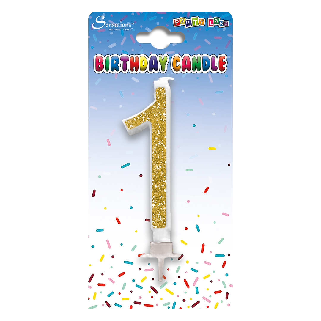Gold Glitter Numeral 1 Candle