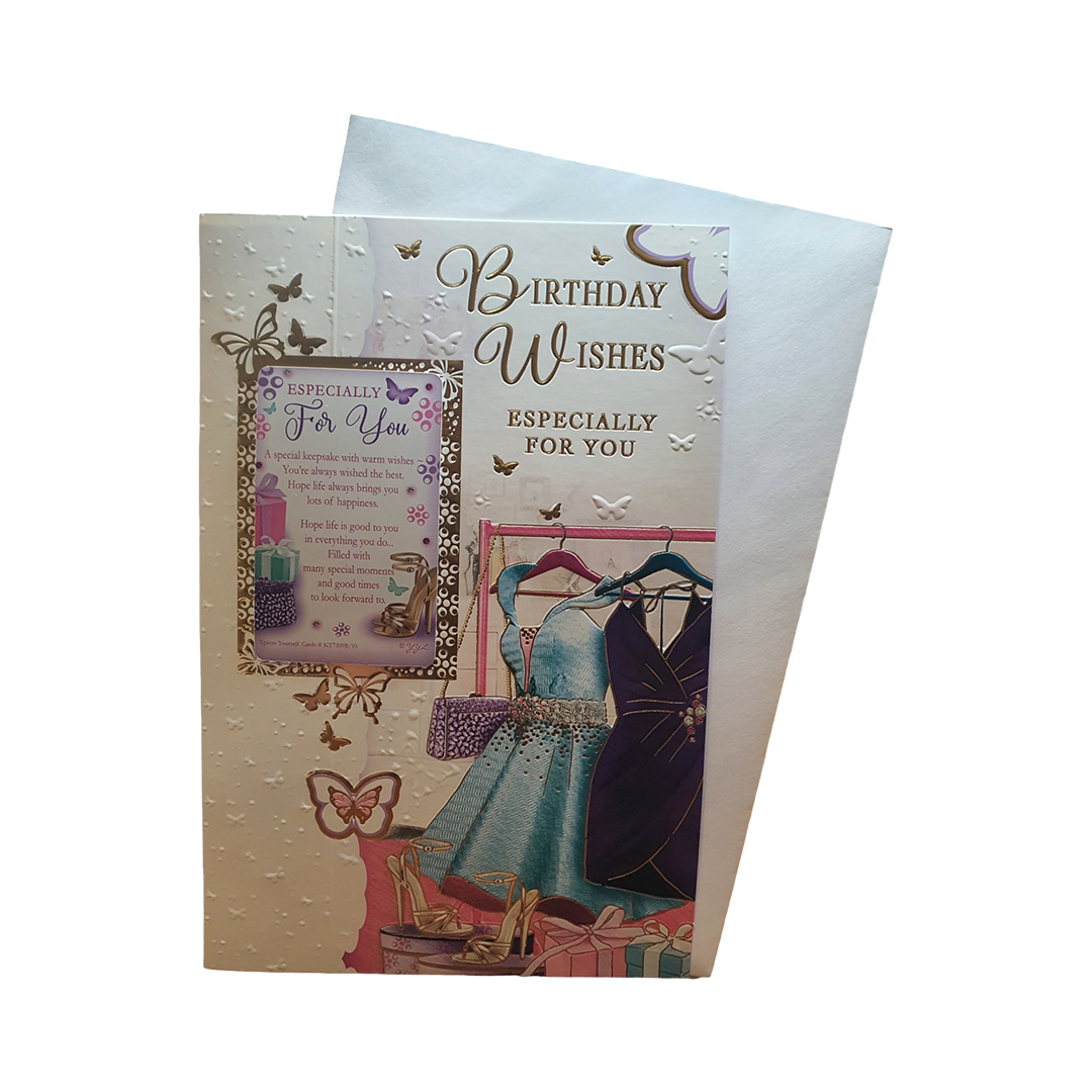 Celebrate your Happy Birthday with Birthday card Especially for you! Featuring Beautiful two gowns hanging and butterflie design card for you. this card is sure to bring a smile to your face. The card also comes with an envelope and Keepsake, making it the perfect all-in-one gift. Crafted from high-quality materials, this birthday card is built to last and is perfect for showing your love and appreciation to your life.