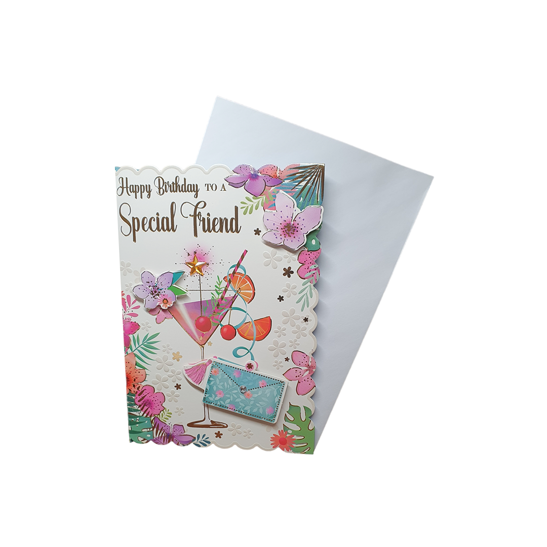 - Celebrate your Special Friend with Happy Birthday Wishes birthday card! Featuring a Summer colours and vibes with flowers design , this card is sure to bring a smile to your Daughter's face.