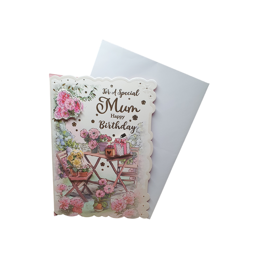 - Celebrate your Special Mum with Happy Birthday Wishes birthday card! Featuring a open back garden design with full of flowers and gift , this card is sure to bring a smile to your Special Mum's face.