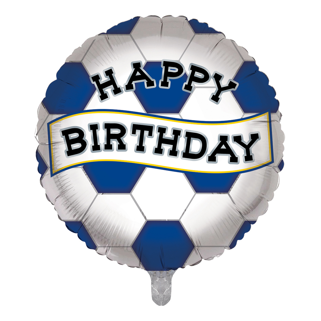 - Celebrate your love for football with our Happy birthday balloon featuring a vibrant blue and white football theme.